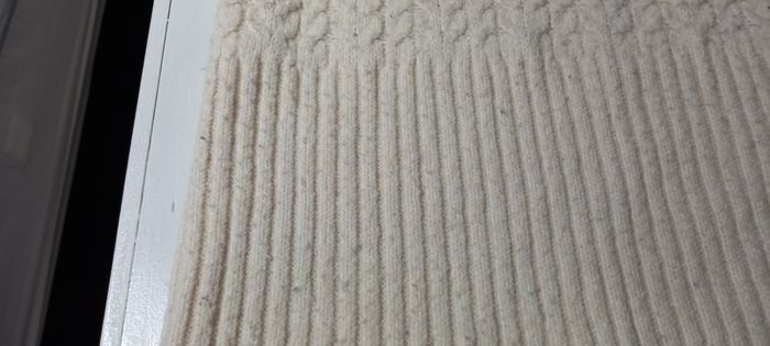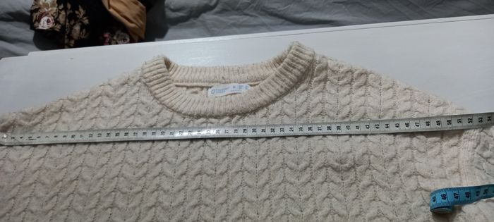 Pull beige torsadé Longueur 63 cm Largeur épaule 51 cm Acrylique Un peu pelucheux Taille S #T36_imoddeco