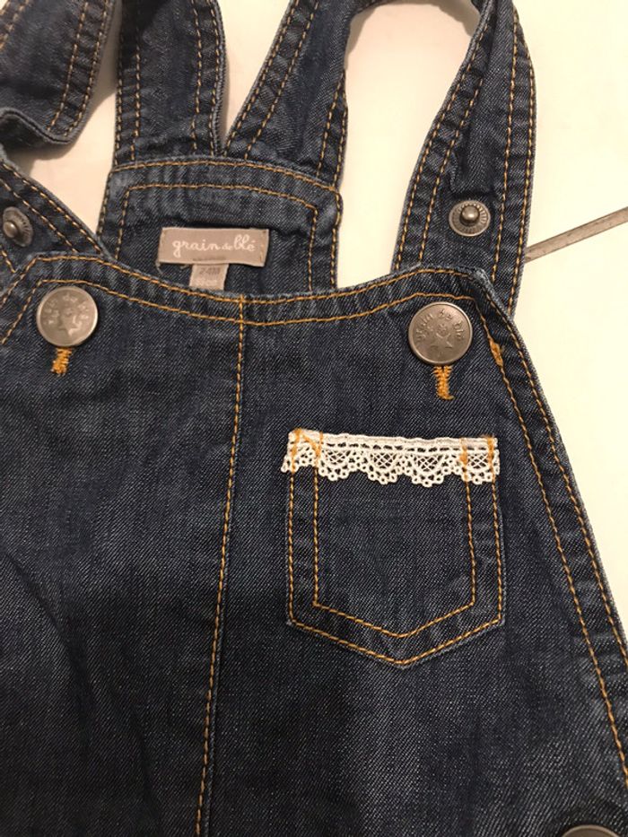 robe en jean 24 mois 86 cm grain de blé dentelle sur la poche réglable aux bretelles #24moisfillechoupi59300 #2ansfillechoupi59300