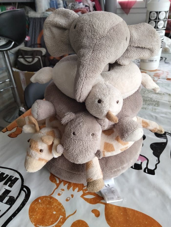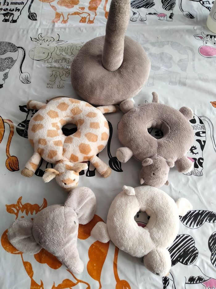 Socle de hochets qui font du bruit en peluche avec chaque étage un animal