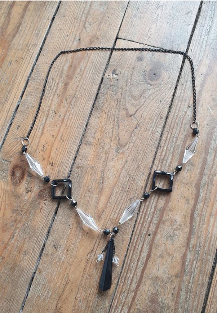 Collier perles noires et transparentes