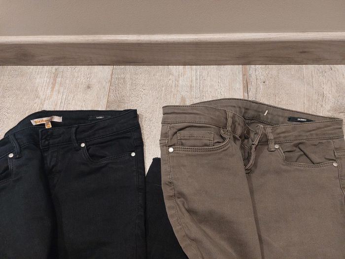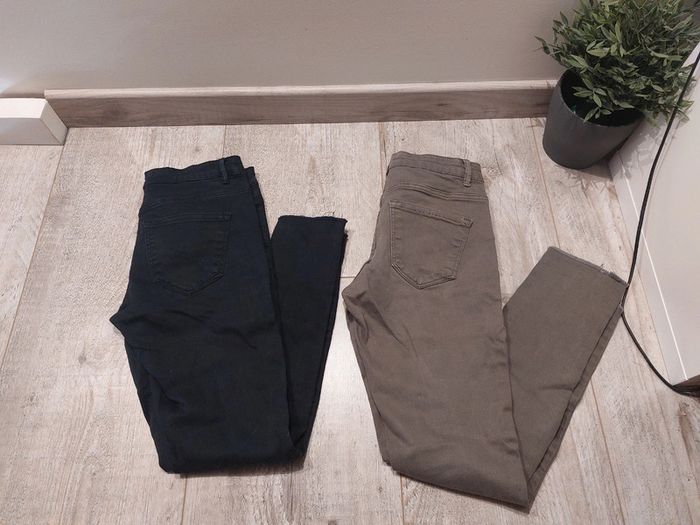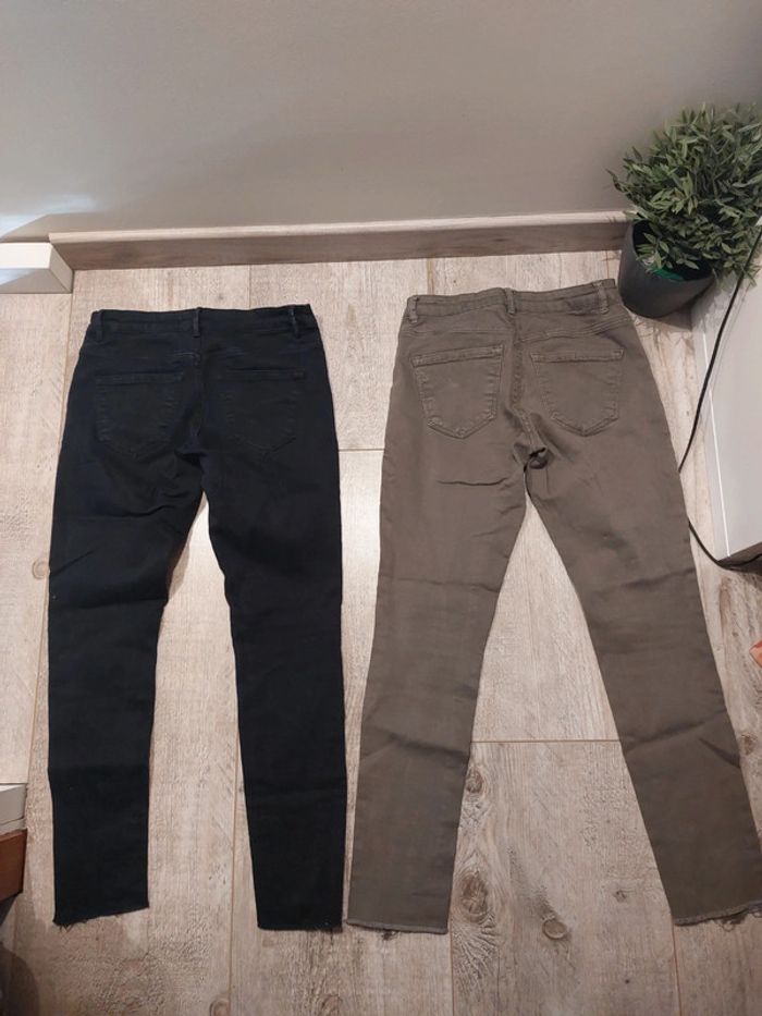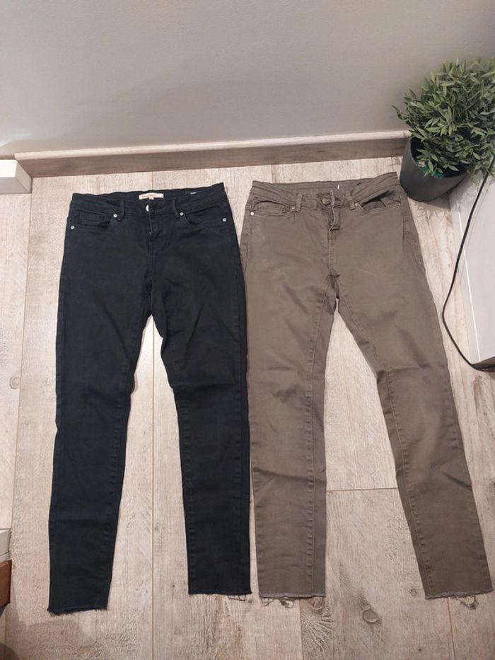Lot de 2 jeans, noir et kaki, de la marque Bizzbee. Taille 34 mais convient pour un 36 (voir photos mesures) En très bon état