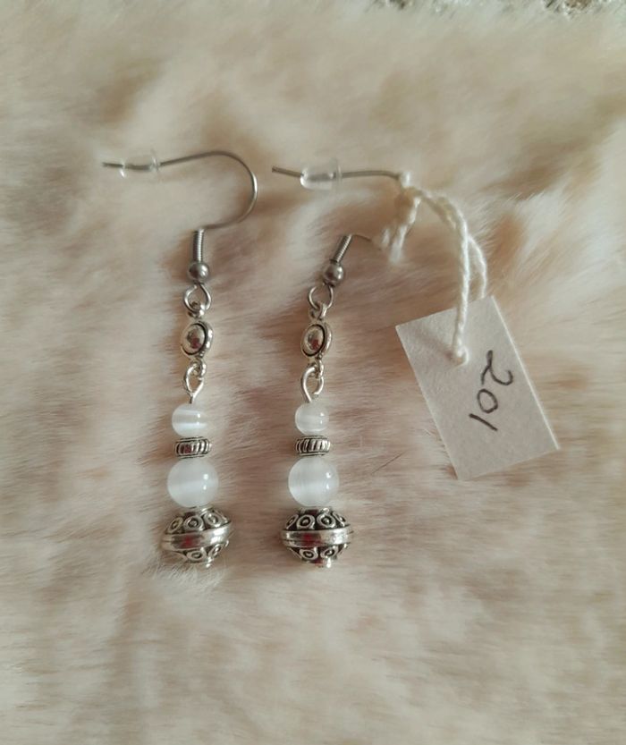 Paire de boucles d'oreilles Fait Main attaches en acier inoxydable et perles en verre Jamais portée #ethnique #bohème #hippie #elfique #médiéval #angélique