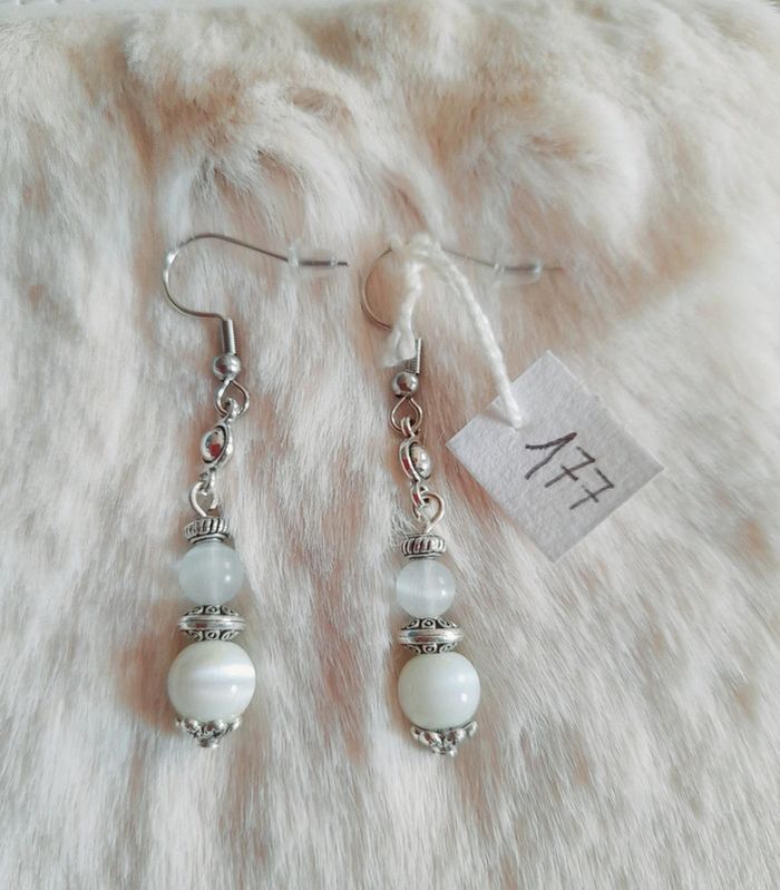 Paire de boucles d'oreilles Fait Main attaches en acier inoxydable et perles en verre Jamais portée #ethnique #bohème #hippie #elfique #médiéval #angélique