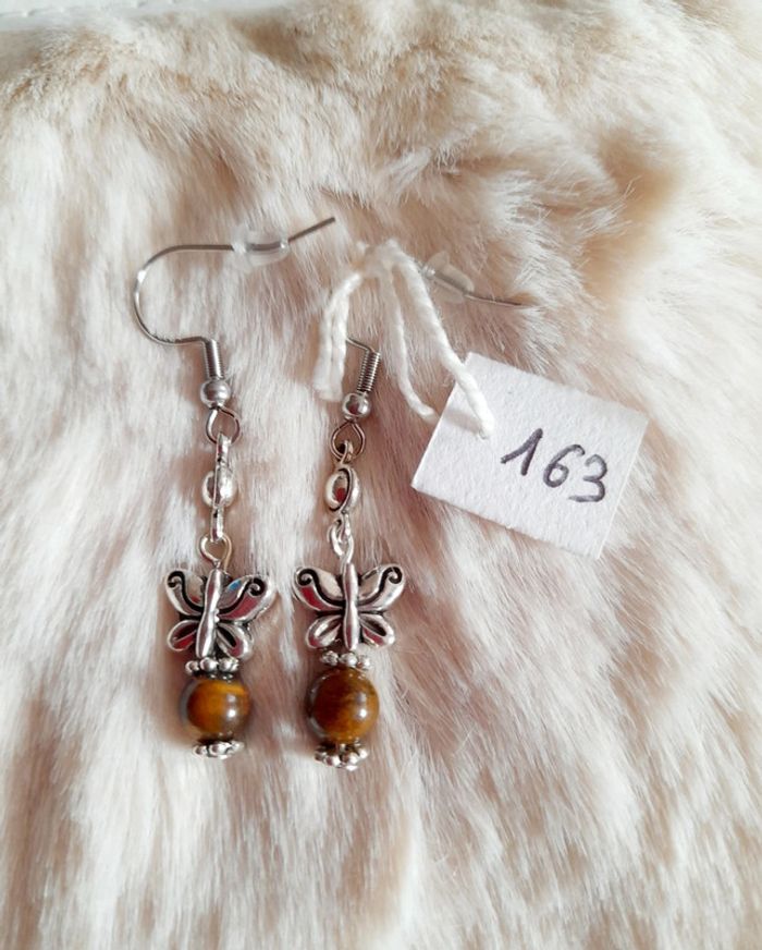 Boucles d'oreilles oeil de tigre papillon