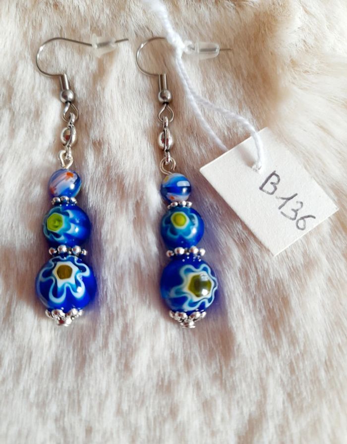 Paire de boucles d'oreilles Fait Main attaches en acier inoxydable et perles en verre Jamais portée #ethnique #bohème #hippie #elfique #médiéval #angélique
