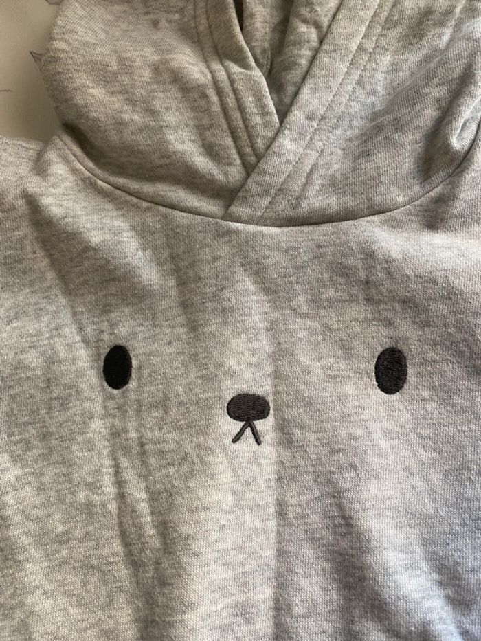 Pull petit ourson avec oreilles sur la capuche Trop mignon Porté une seule fois Chaud à l’intérieur 6 mois Pour plus de renseignements n’hésitez pas, pensez à faire des lots