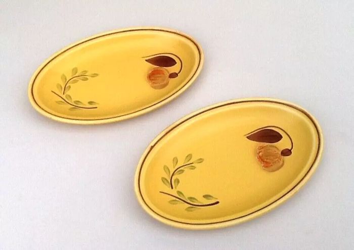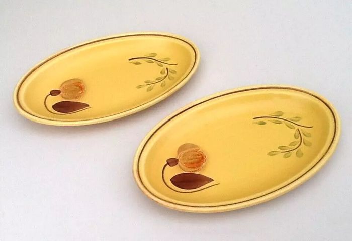 Années 1960 2 raviers Ateliers du Revernay France (Digoin Saône-et-Loire) Grès mat Décor floral Longueur : 235mm Largeur : 150mm Hauteur : 25mm Poids total : 480grs