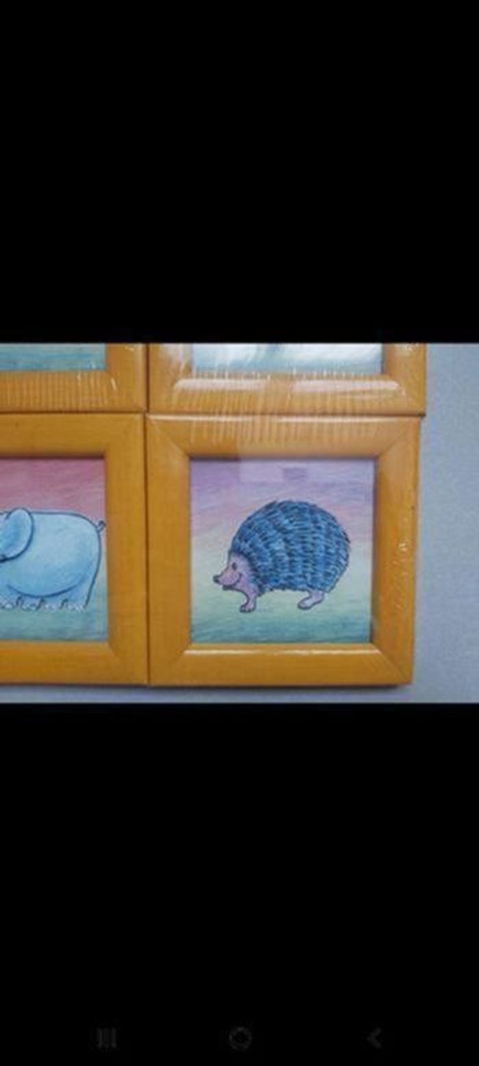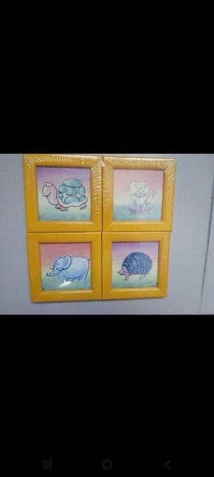 Lot de 4 cadres avec dessins d'animaux Taille du cadre 13cm/13cm Taille à l'intérieur du cadre 9cm/9cm