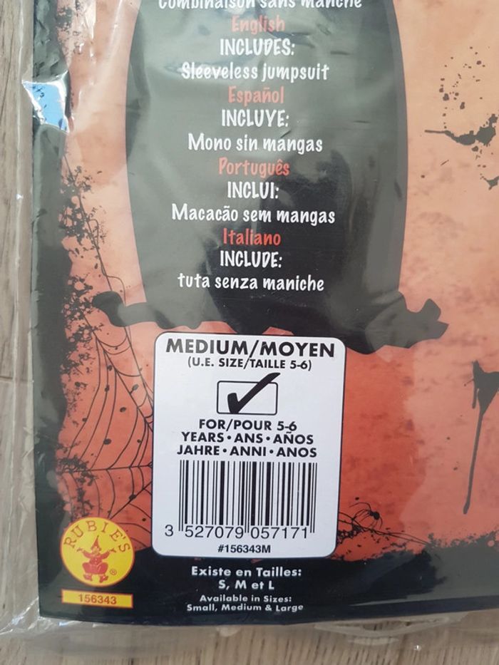 Déguisement squelette taille 5-6 ans