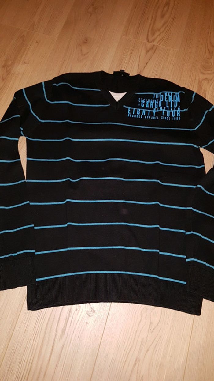 Pull en coton cool v avec col tee shirt intégré - photo numéro 1