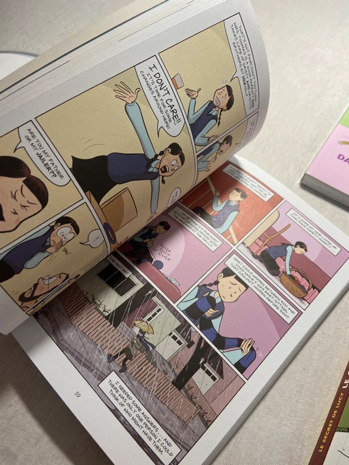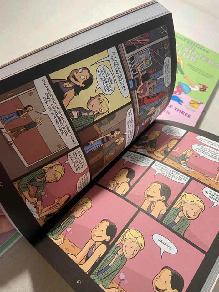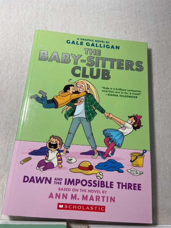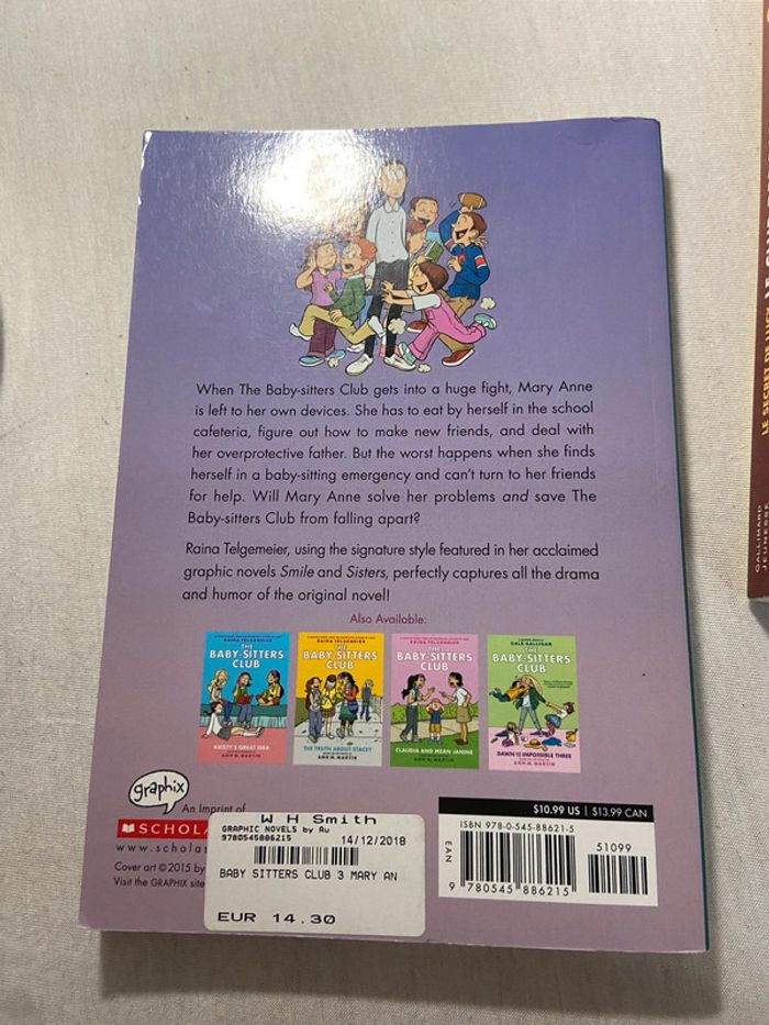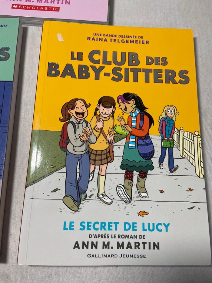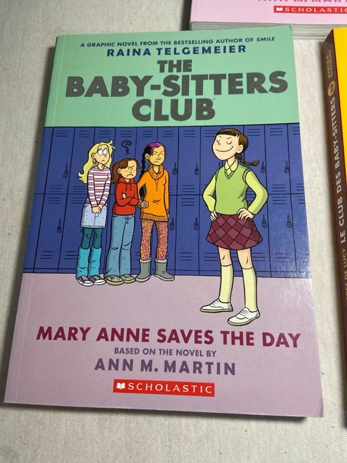 Ils s'agit de Bd 2 sont en anglais et un en francais Tres facile a lire Tome 2 Le secret de lucy ann martin gallimard jeunesse raina telgemeier Tome 3 et 5 en anglais the baby-sitters club Mary anne saves the day Dawn and the impossible three Scholastic