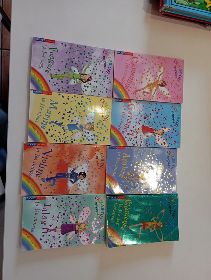 Livre de 8 lot l' arc en ciel magique dont1 est offert : Clémence la fée des vacances . abîmé sur la tranche et page d'ecoler voir photo. NS