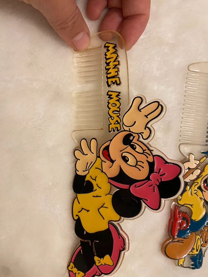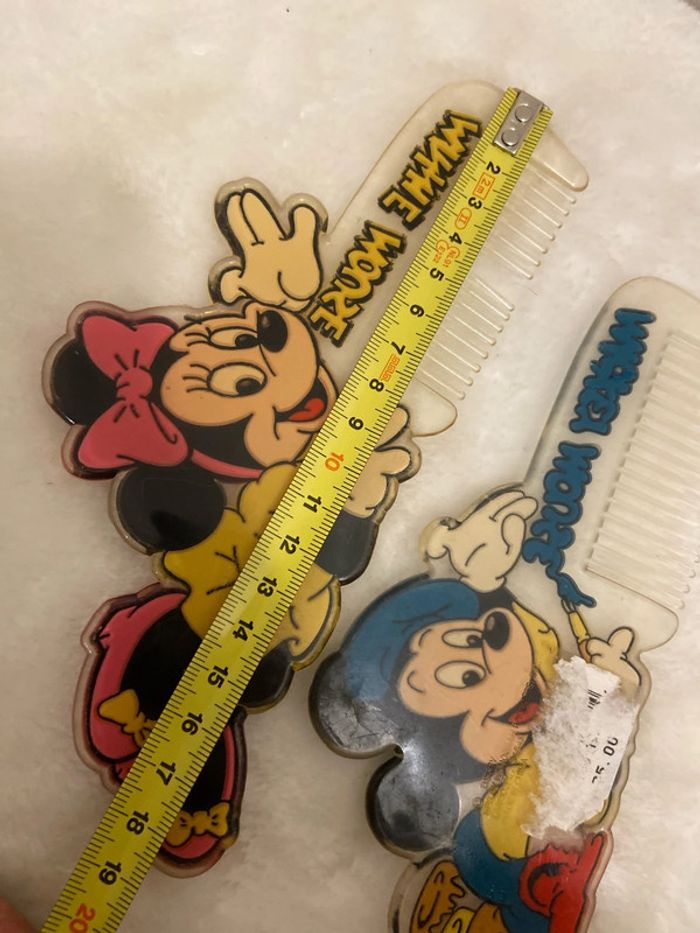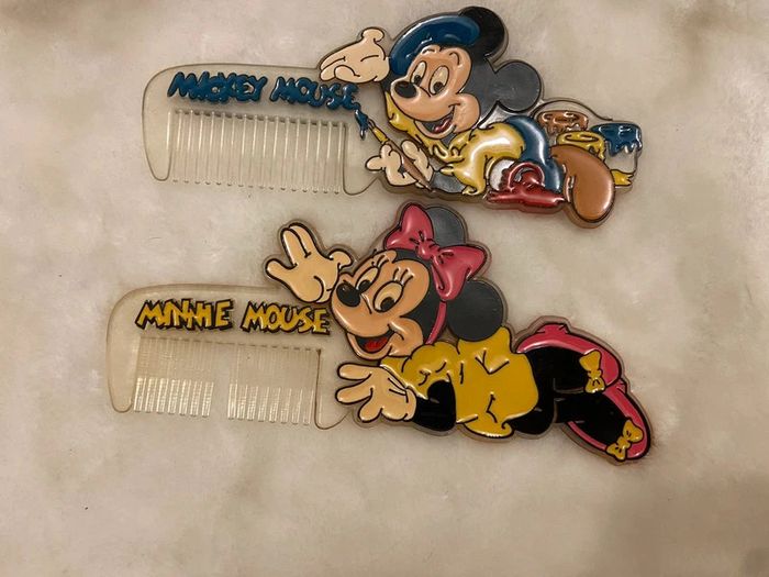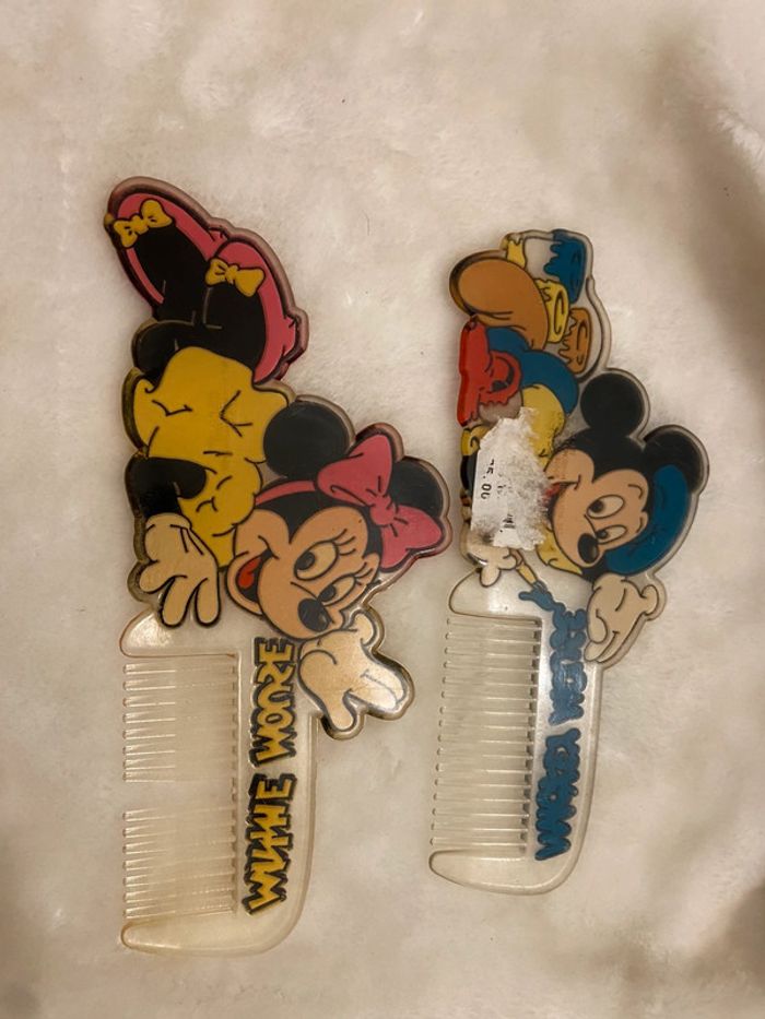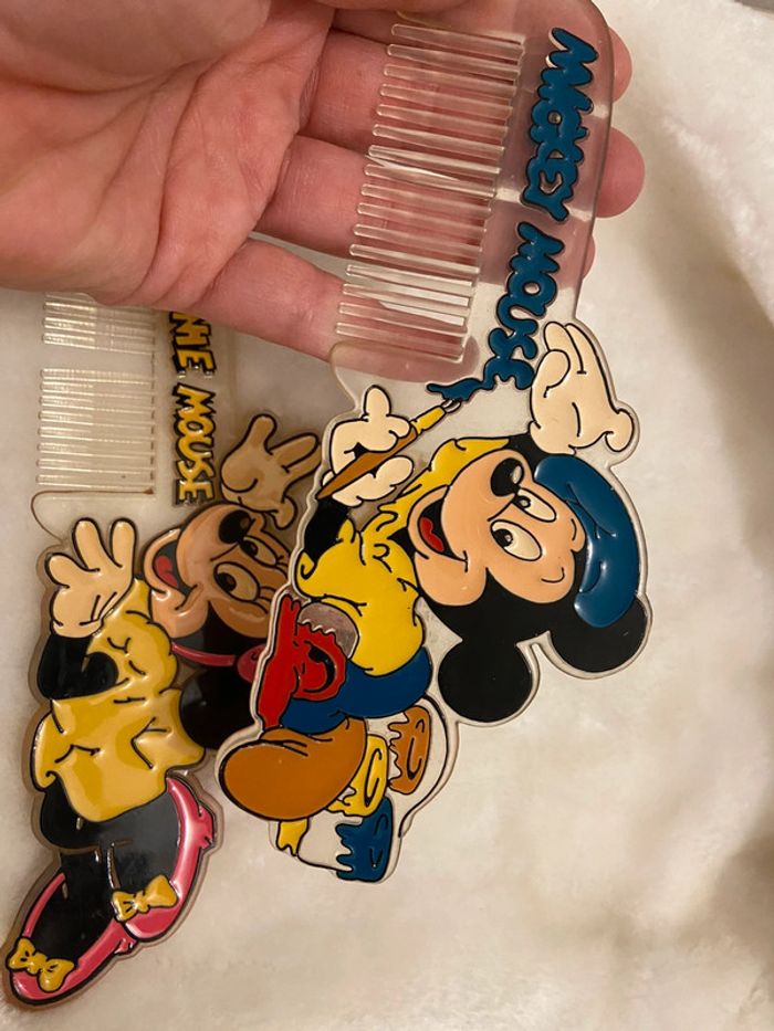 Deux peignes mickey peintre peinture Et minnie (manque une dent au peigne) voir photo Vintage ancien disney