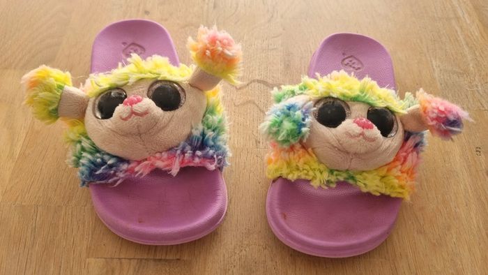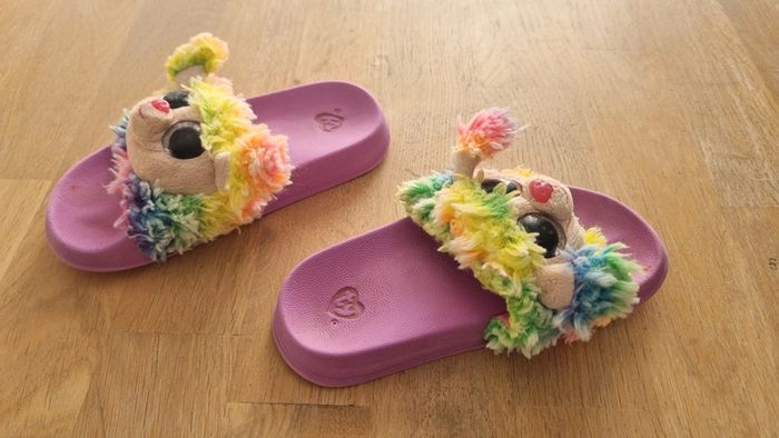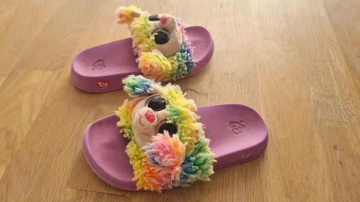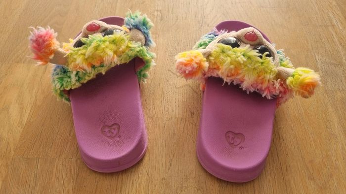 Peu portées et en bon état. À noter, des traces au bout de la semelle interieur (visible photo 1) et le logo TY c'est enlevé sur celle de gauche (visible photo 5).