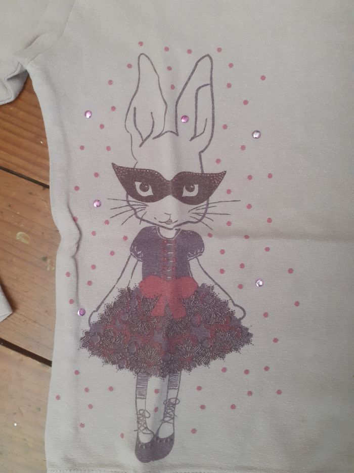 Sweet rose clair motif lapin fond tulle 5 ans (légère tache à l'ourlet)