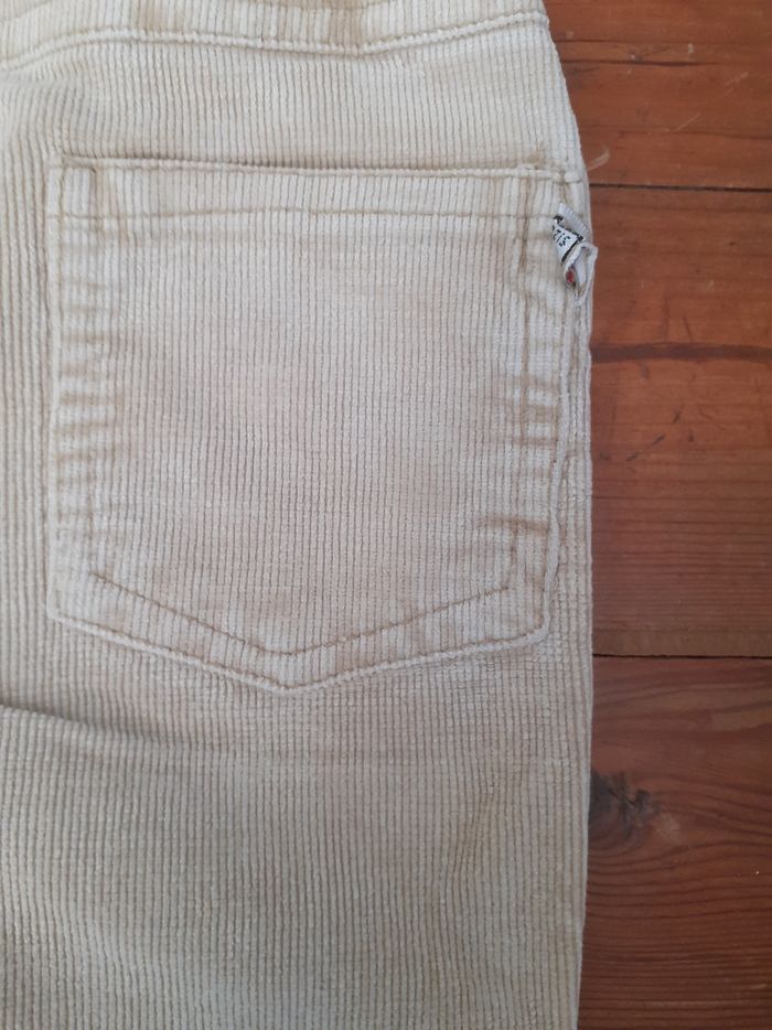 Pantalon en velours côtelé beige avec fond frangé - photo numéro 3