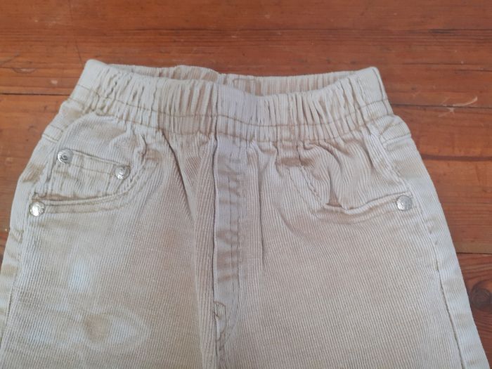 Pantalon en velours côtelé beige avec fond frangé - photo numéro 2