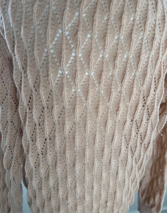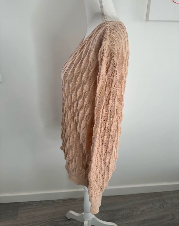 Pull en mailles torsades ajourées beige abricot Vintage T46 3XL - photo numéro 5