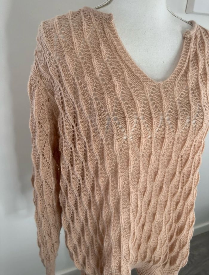 Pull - Excellent état - Taille 44 équivalent XXL - Beige abricot - Couleur identique aux photos - Col légèrement ouvert - Vintage, années 80' - Maille ajourée - Effet torsades - Plus d'étiquette de taille ni de matière - Probablement de la laine Dimensions: - 65cm niveau aisselles - 70cm de long