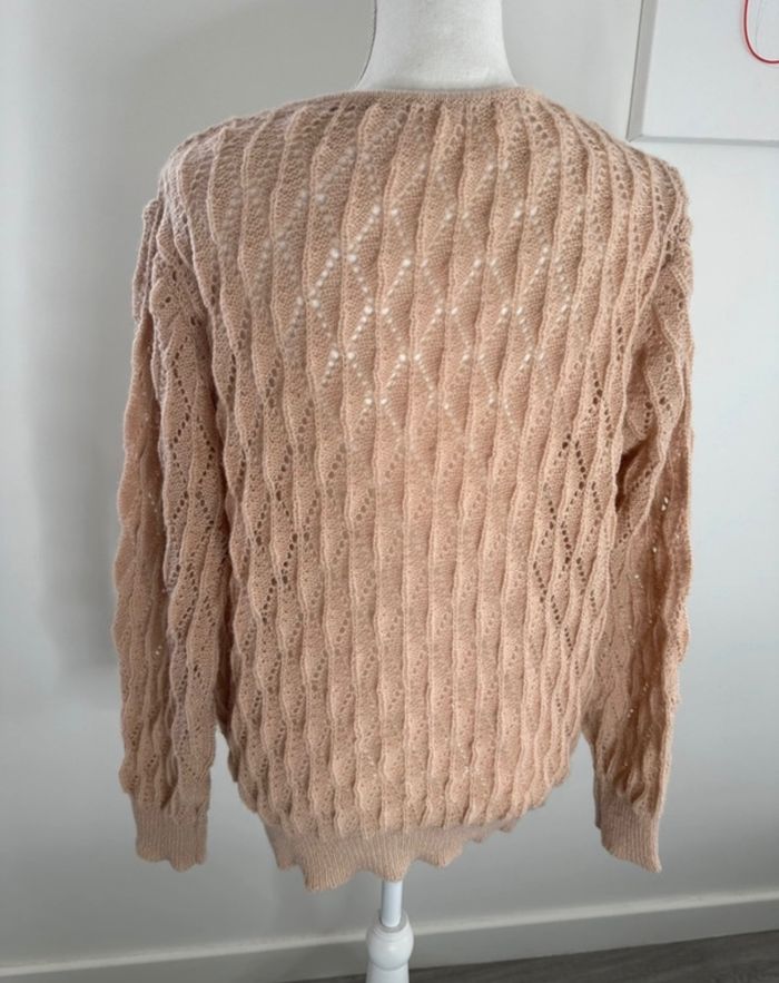 Pull en mailles torsades ajourées beige abricot Vintage T46 3XL - photo numéro 2