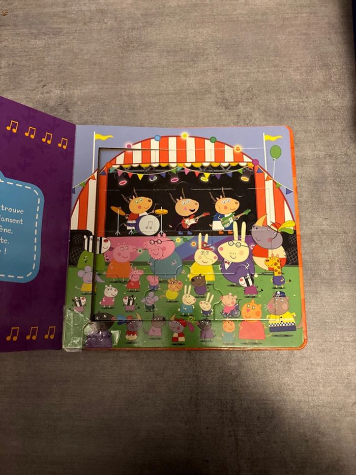 Livre Peppa Pig, mon joli livre puzzle Abîmé au niveau du dernier puzzle N hésitez pas à aller voir les autres livres pour enfant dispo en cliquant ici: #clochettelivreenfant ou uniquement peppa pig en cliquant ici: #clochettepeppapig Également dispo: tchoupi , peppa pig, Juliette, max et Lili, Disney, petit loup Les livres sont d occasion donc peuvent avoir quelques traces d usure