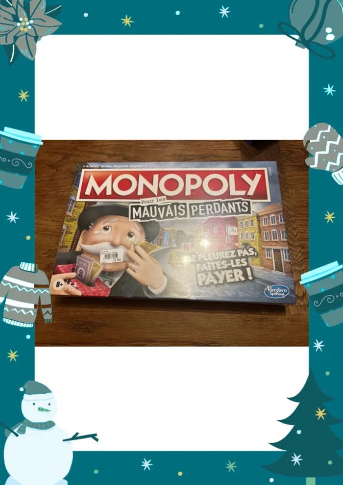 Monopoly pour les mauvais perdants #clochettejouet PERDRE POUR GAGNER : Ah, les joies de la vengeance ! Dans cette version hilarante du Monopoly, les choses agaçantes comme payer un loyer ou aller en prison aident les joueurs DES PIÈCES À RAMASSER : Au Monopoly pour les Mauvais perdants, les joueurs veulent s'arrêter sur les cases inutiles, payer des taxes et des loyers, et même aller en prison, car ils obtiendront des pièces Mauvais perdant PION M. MONOPOLY : Perdre n'est que le début ! Dès qu'on a 4 pièces Mauvais perdant, on peut les échanger à la banque pour utiliser le pion M. Monopoly qui permet de « piétiner » les joueurs et de réclamer de l'argent au lieu d'en payer
