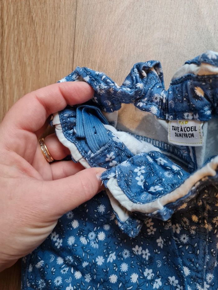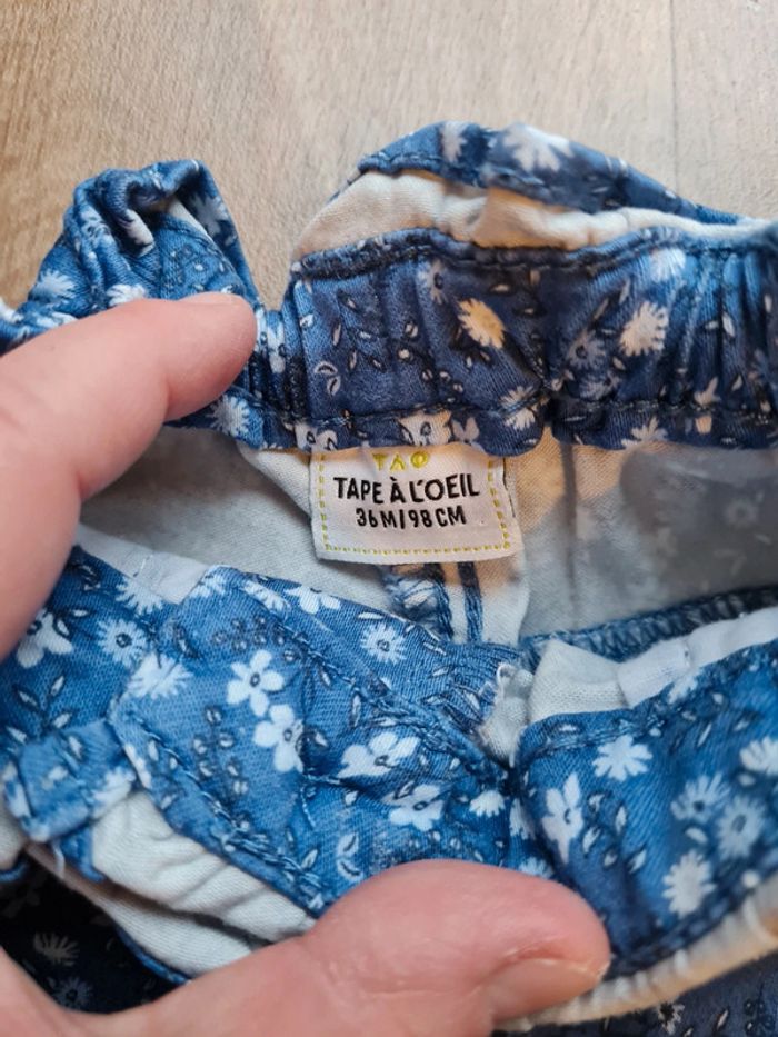 Vend pantalon bleu motif fleuri Taille 36 mois Taille élastique et boutons réglable Intérieur Marque Tape à l'œil Très bon état