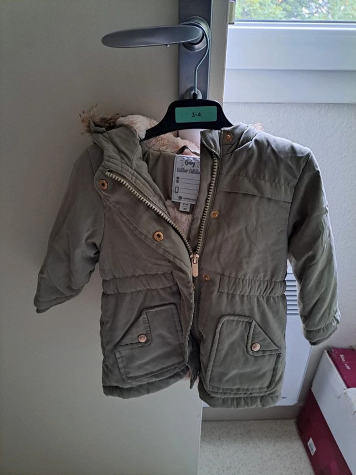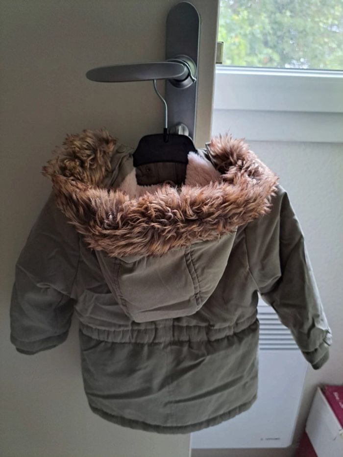 Vend manteau couleur kaki à l'extérieur Chaud à l'intérieur couleur rose tout doux Marque Vertbaudet Taille 18 mois Très bon état