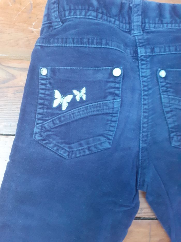 Pantalon en velours mauve motif papillon blanc 5 ans