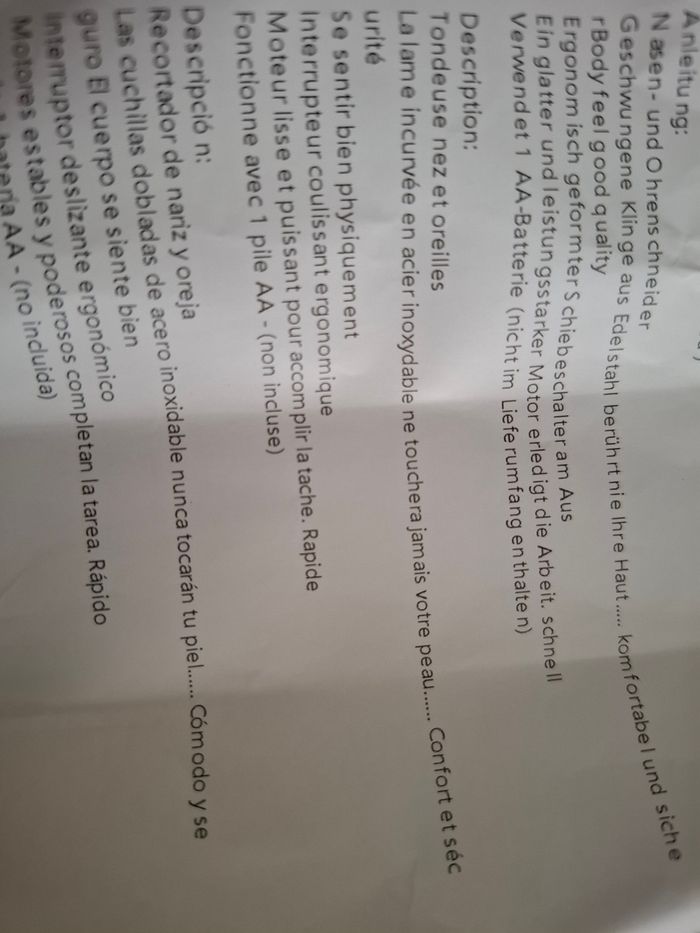 Bonjour 👋, tondeuse nez et oreilles, fonctionne avec pile AA. NEUF donc jamais utilisée. 4€