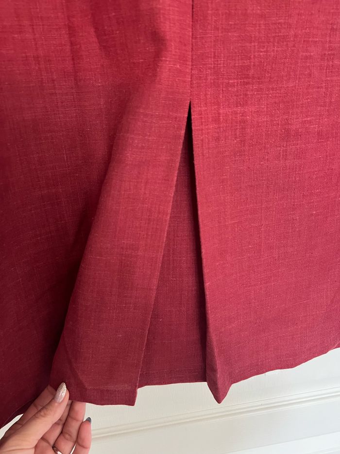Veste en lin de couleur bordeaux, assez épaisse. Présence de 4 poches, épaulettes, 2 passants si on souhaite mettre une ceinture. En très bon état mais porté donc légèrement bouloché. Mesures prises à plat: - épaule à épaule 46 cm - sous aisselles 66 cm - longueur totale 76 cm Taille 44/46, sans marque. Envoi rapide et soigné, réduction automatique dès 2 articles sélectionnés. Mes autres ventes ici: #femmeugolola #veste44femme #veste46femme #femme44 #femme46