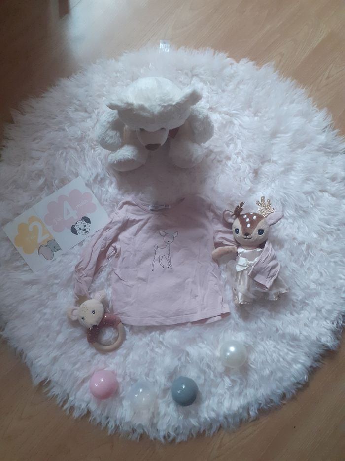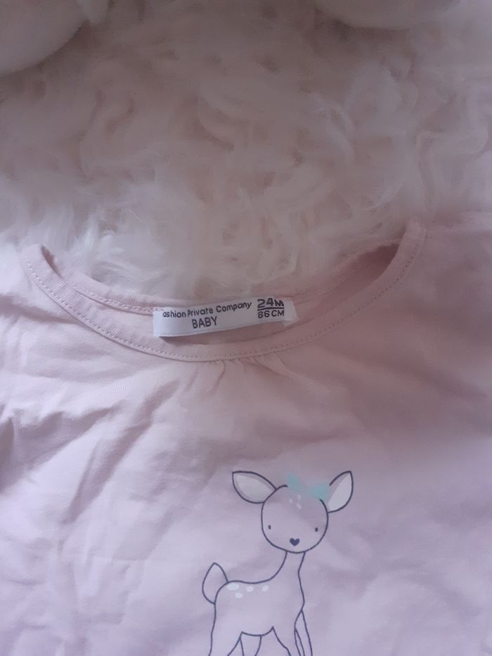 Un t-shirt a manches longues avec sa petite biche Couleurs rose Taille 24 mois Marque fashion private compagny baby Tres bon état
