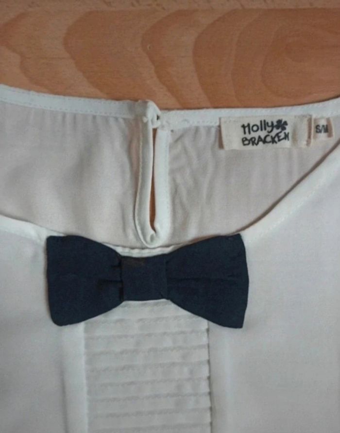 Top débardeur molly Bracken taille s/m noeud papillon noir effet de transparence #mollybracken #mollybrackentailles Top blanc transparent Noeud papillon noir #Top #débardeur #mollybracken #taille #s/#m #noeud #papillon #noir # transparence