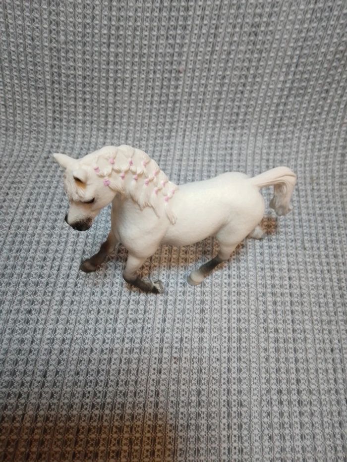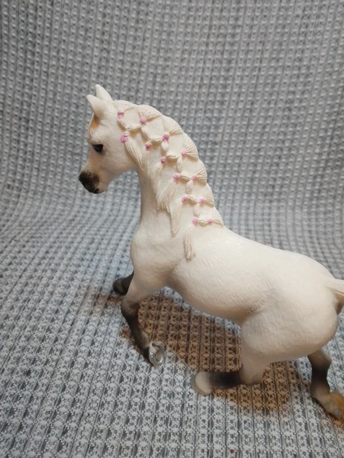 En excellent état ! - Figurine Schleich : jument pur sang arabe blanche avec noeuds roses sur la crinière tressée, pattes grises, museau et yeux noirs. * Rappel : -5% pour 3 articles, -10% pour 5 articles. #sambaetmayline21Jouets #sambaetmayline21Jeux