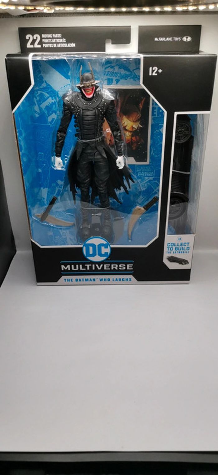 FIGURINE DE COLLECTION MCFARLANE Compléter cette magnifique collection de trois personnages issus de la collection Multiverse BATMAN de chez MCFARLANE La TROISIEME figurine de cette collection THE BATMAN WHO LAUGHS Accompagné de ses accessoires également la troisieme et dernier partie de la Batmobile chaque figurine de la collection à une partie de la Batmobile a collectionner À vous de compléter ou pas votre collection en achetant les trois personnages fétiche de cette collection TRÈS GRAND fabricant de figurine MCFARLANE