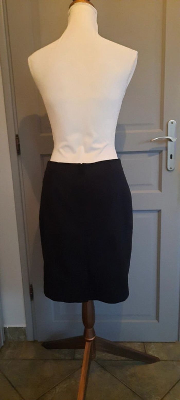 Jupe noire H&M taille L. Doublée fermeture par bouton et fermeture éclair. Bouton de rechange. Passants pour ceinture. #femme40 #jupe40 #jupenoire40 #evyemi #femme40evyemi