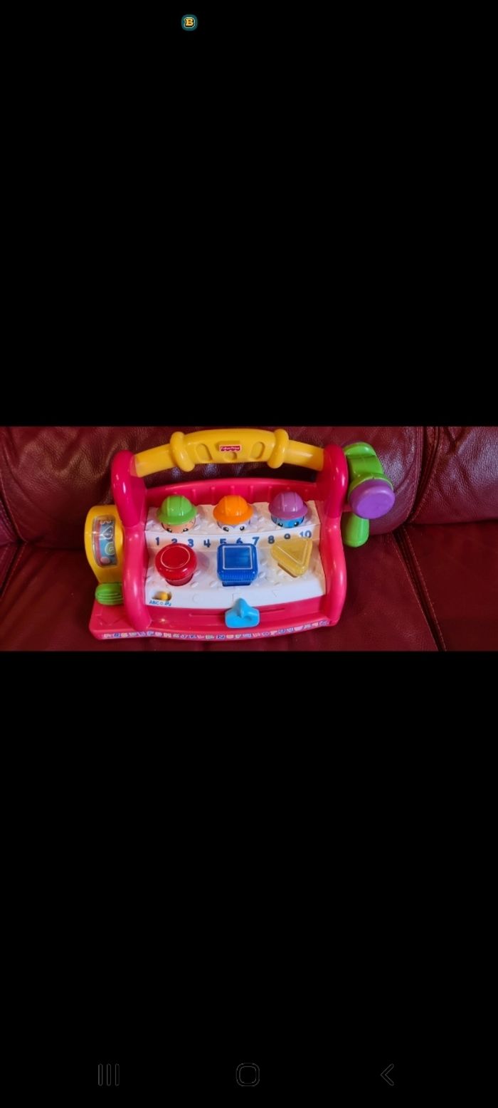A partir de 6 mois Plusieurs activités pour amuser bébé A gauche 1 petit mètre qui fait tourner un rouleau Au centre il faut appuyer sur les formes avec les mains ou le marteau pour faire remonter les têtes des personnages Possibilité de le faire en musique Les formes s'allument pour savoir sur laquelle il faut appuyer Fonctionne avec des piles Le volume est réglable