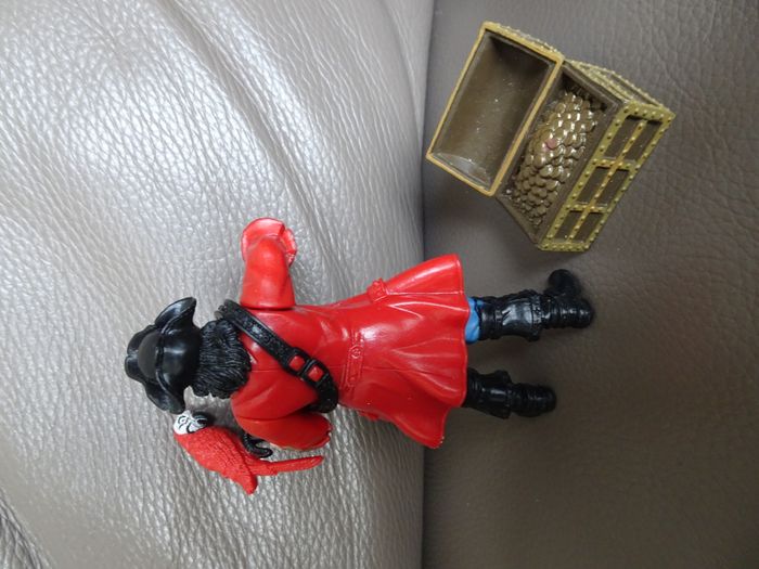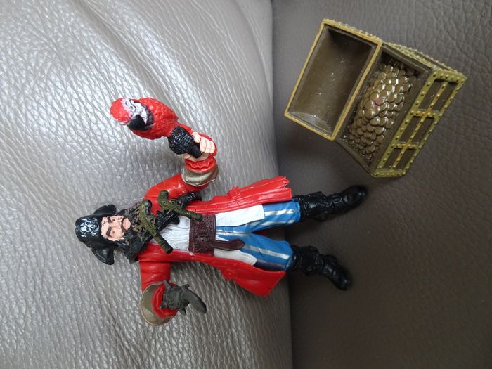 Figurine pirate barbe noire / capitaine crochet avec perroquet et coffre au trésor, chap mei, 10 cm de hauteur.