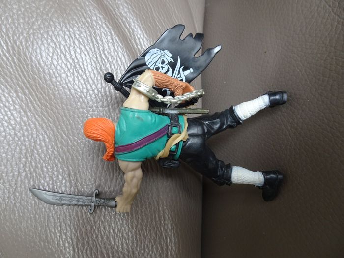 Figurine pirate avec drapeau tête de mort, chap mei 10 cm de hauteur
