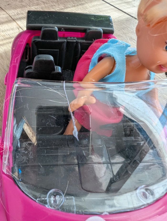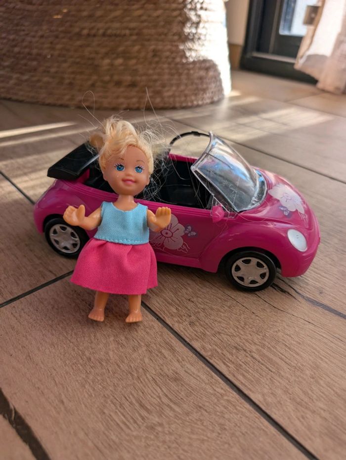 #marine74c_jouet Petit poupée style mini barbie avec sa voiture cabriolet. Pare-brise un peu fissuré
