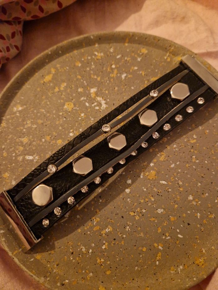 Fermoir aimanté Pour poignet fin à moyen En tbe Noir et argenté #flowpibzhbijou