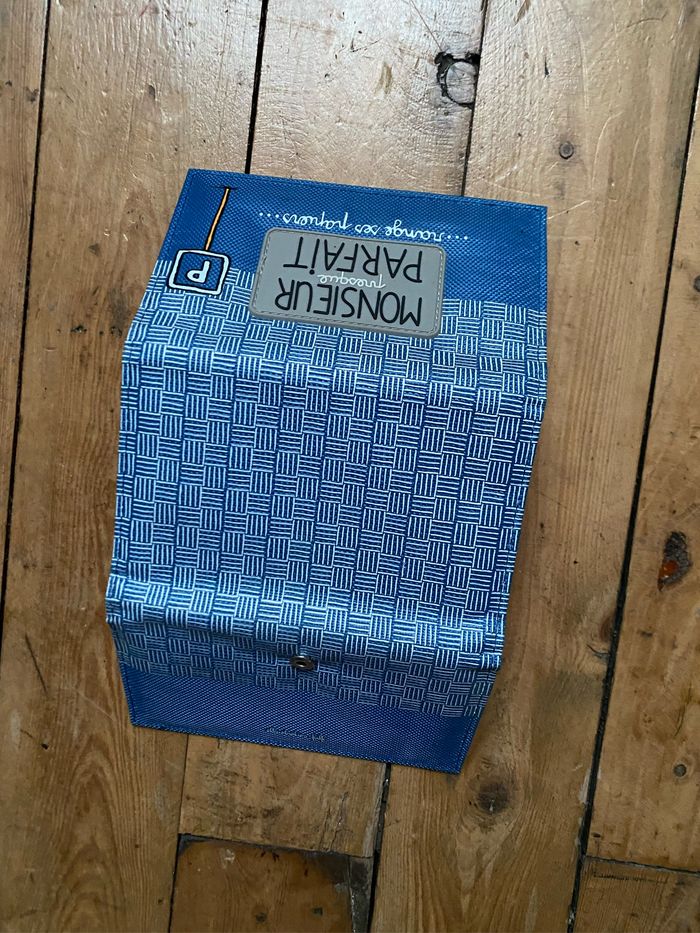 Porte feuille neuf Bleu effet tissé monsieur presque parfait range ses papiers Marque derrière la porte Dimensions fermé 15,1 x 9,7 cm