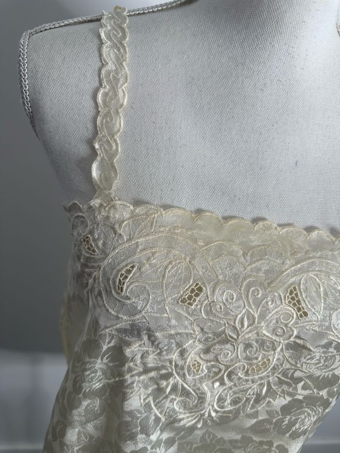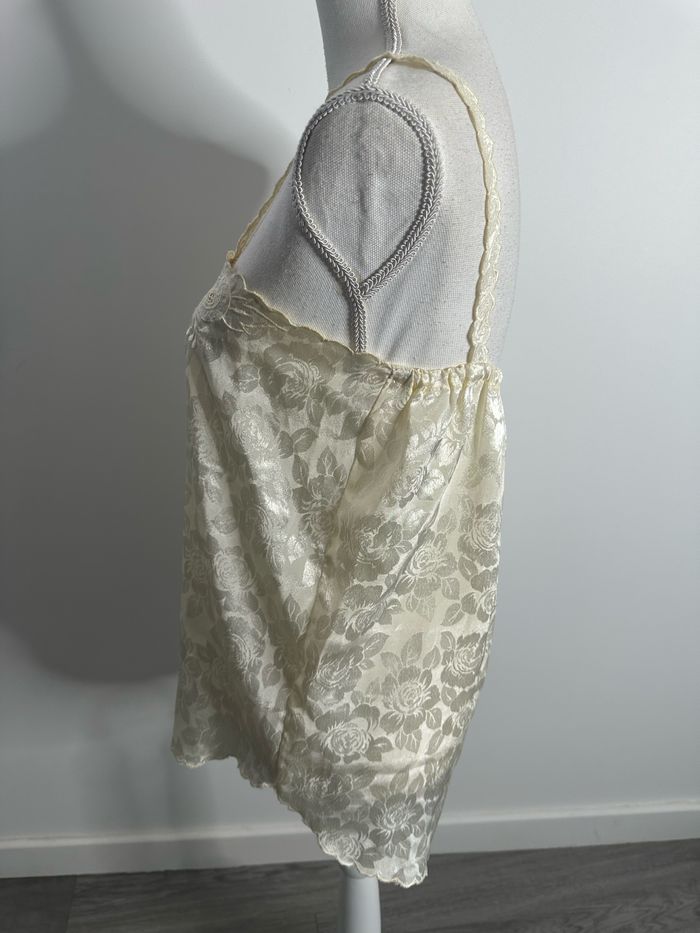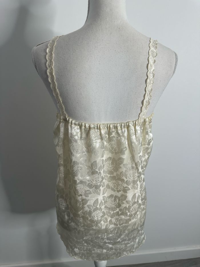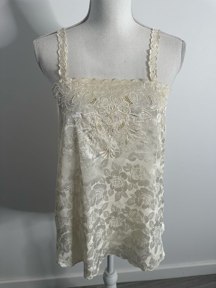 Débardeur satiné broderies dentelle blanc crème Vintage T38 M