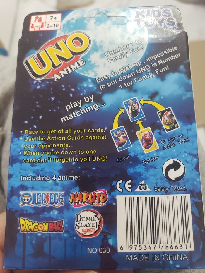 Neuf Jeu de cartes UNO  Cartes personnalisés avec les personnages de One Piece, Naruto, Dragon Ball et Demon Slayer  A partir de l'âge de 7 ans  Parfait pour s'amuser
