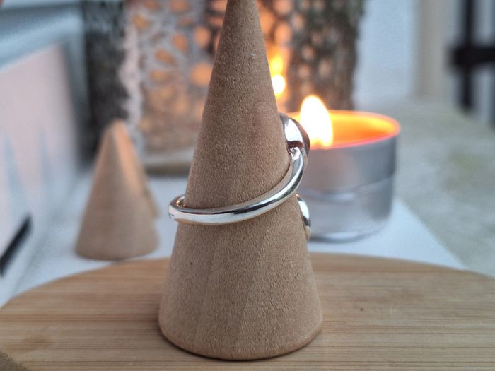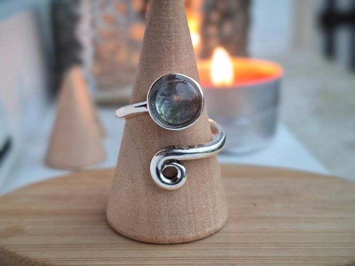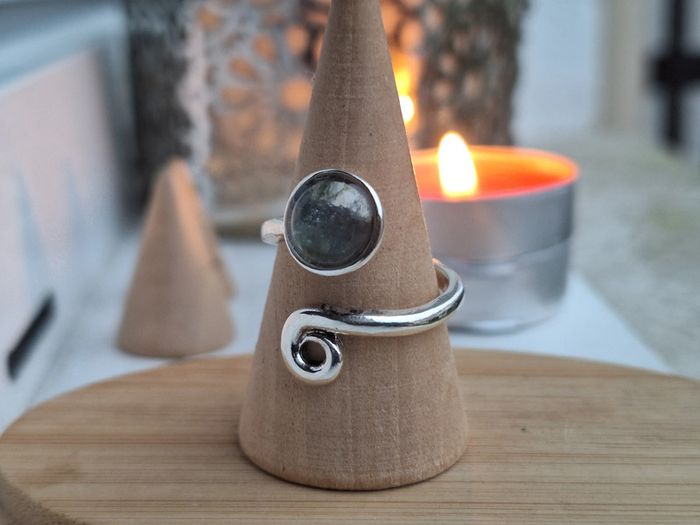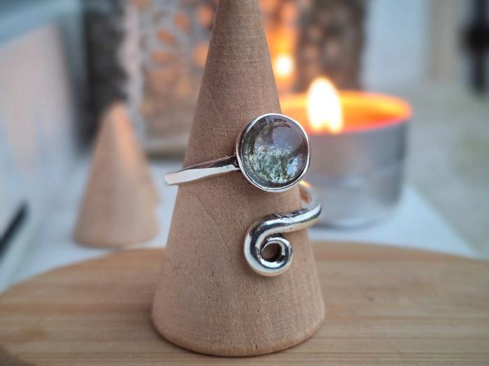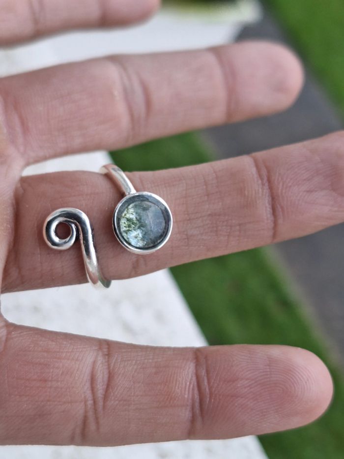 Bague ouverte Argentée avec perle verte, avec un design Elégant et Minimaliste, Ajustable - photo numéro 5