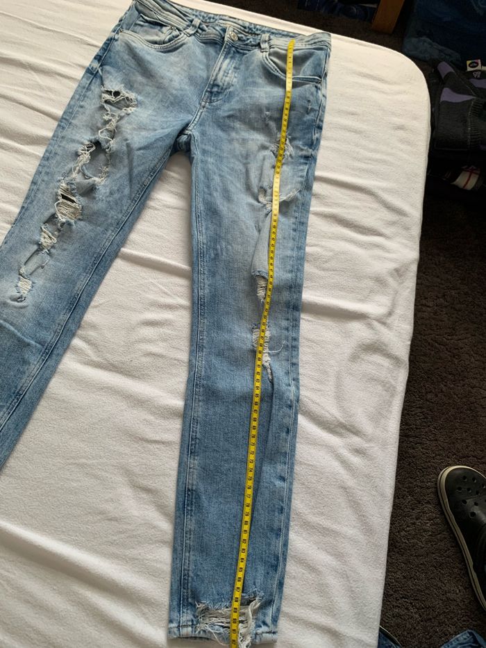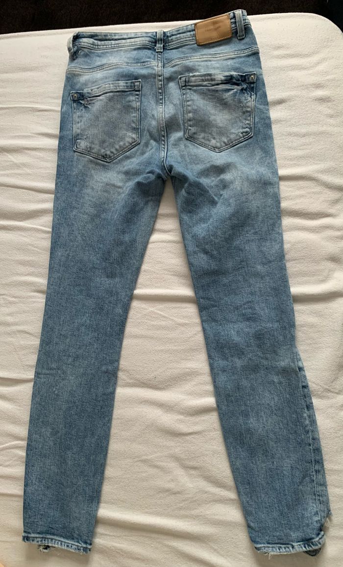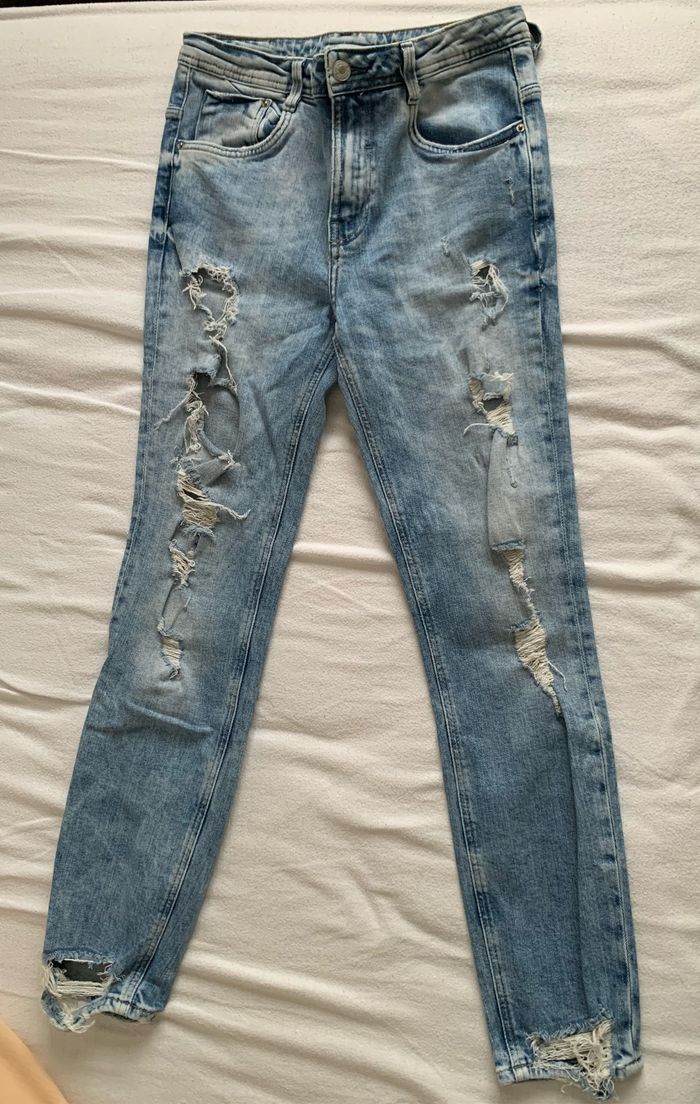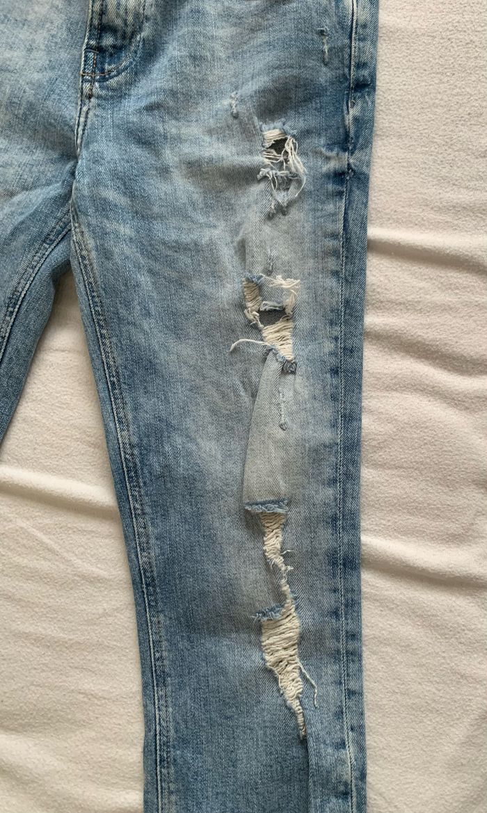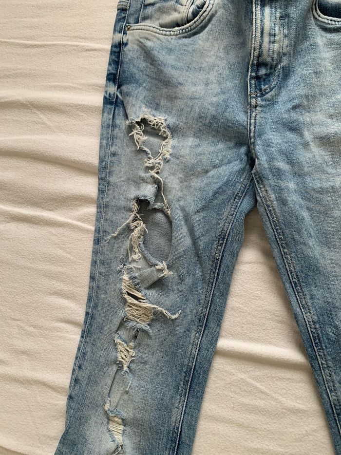 Jean coupe slim, troué sur le devant, taille 36 de chez Zara