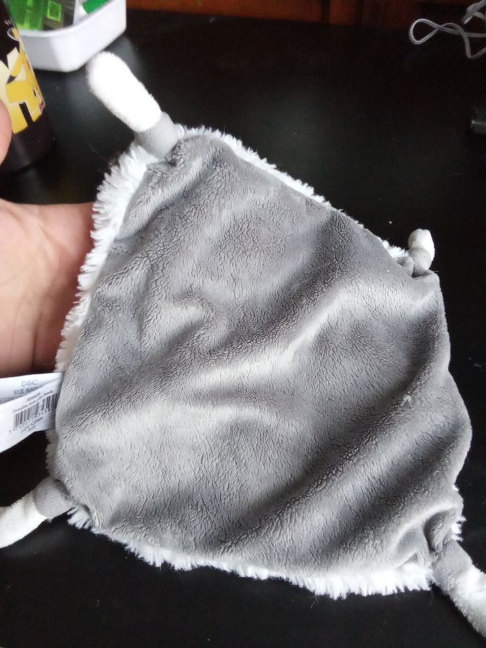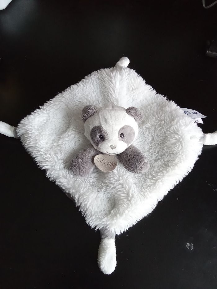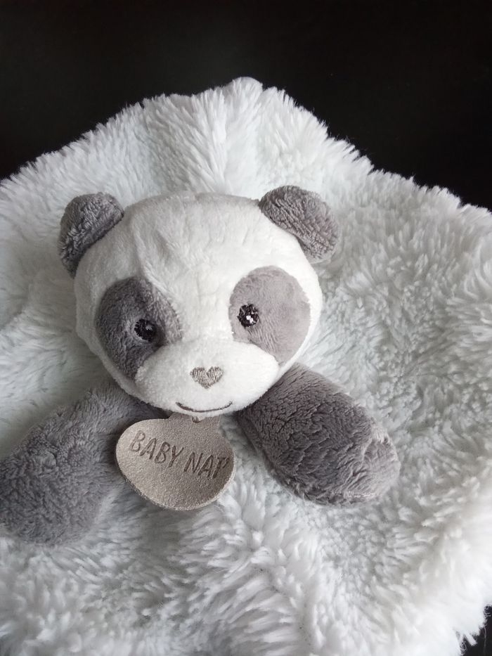 Doudou carré très doux tête de panda gris et blanc marque baby nat', 2 étiquettes présentes. Bon etat général Beaucoup d'autres doudous mm marque également à vendre ds mon dressing et réduction activée