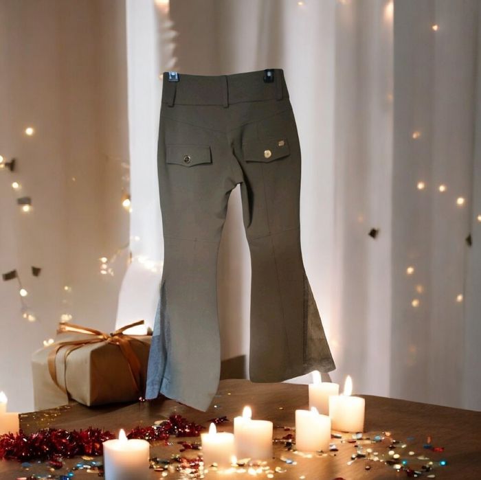 Magnifique pantalon brésilien de marque Garnūs de couleur kaki jambes évasé en filet, très original et très classe, taille 38