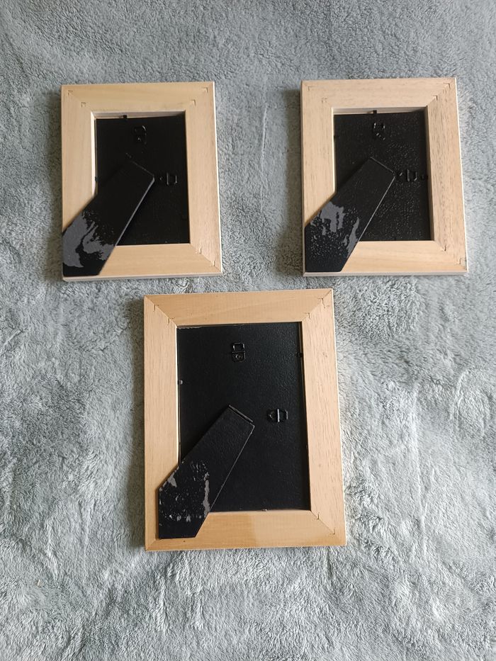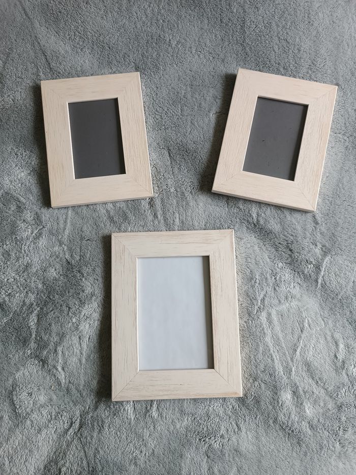 Lot de 3 cadres bois blanchi vieilli en super état Les supports ont le revêtement abîmé mais étant à l'arrière est non visible. Le grand dimension 12x17 2 petits dimension 13x8 Pensez à faire des lots les remises sont activés. Dressing moderne et à petit prix. Cliqu