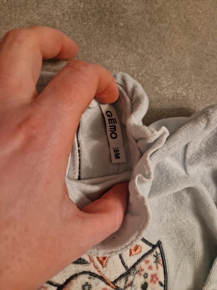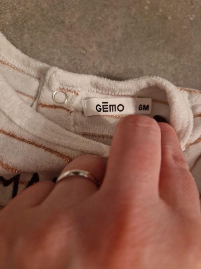 Lot de 2Grenouillères 1 pièce bébé fille en velours bleu ciel motifs rose blanc rayé T6mois TBE Gémo - photo numéro 4